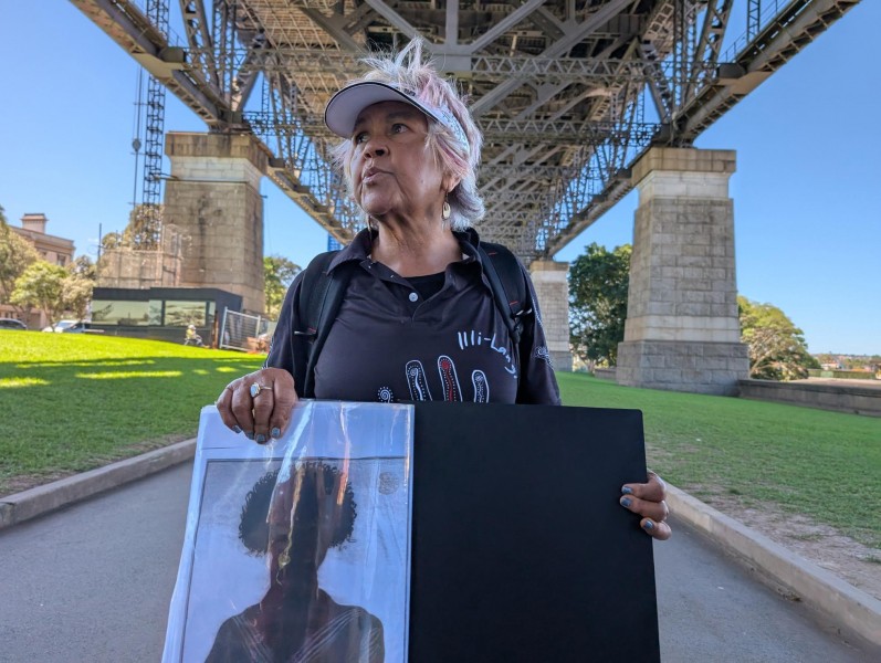 Aunty Margret Campbell, an elder and founder of Dreamtime Southern X, an Aboriginal culture tour operator, guides visitors along the Sydney Harbour foreshore.